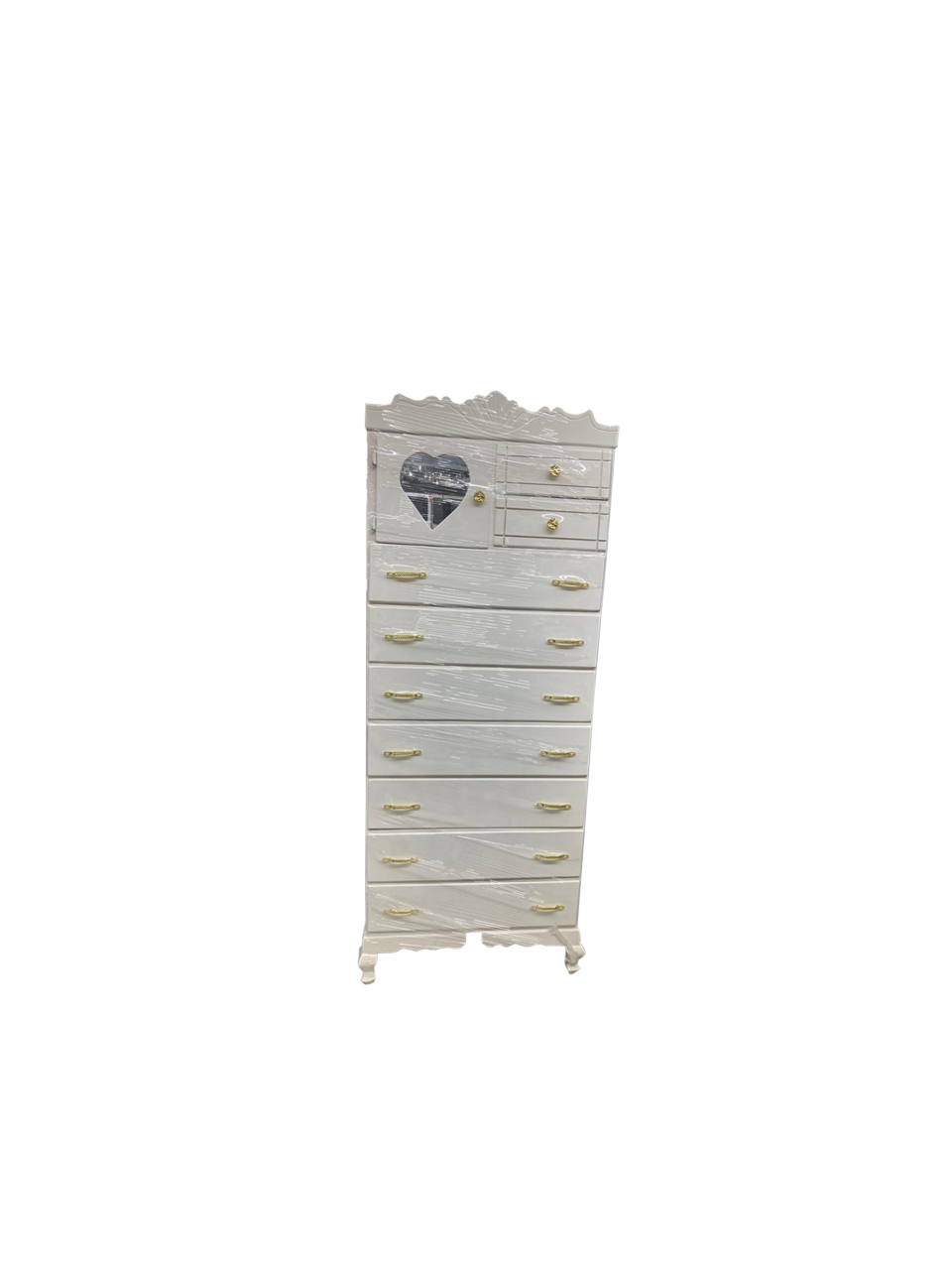 9 Drawer highboy chest with cupboard and mirror (White)